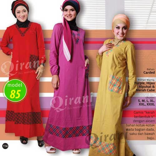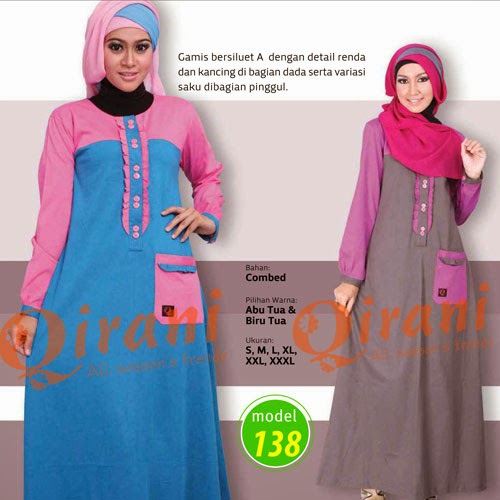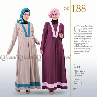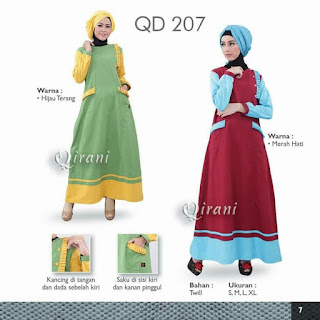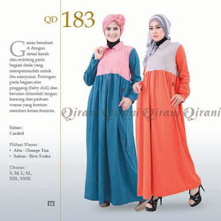 Koleksi busana muslimah gamis Qirani terbaru, menghadirkan busana muslim dengan bahan kaos combed berkualitas dan desien yg trendy, modern namun tetap syar'i.