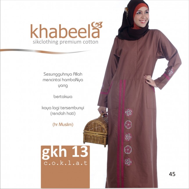 Gamis dan Blouse Khabeela melengkapi koleksi busana muslim anda. Dengan bahan kaos & katun tebal dan penuh kreasi warna dan design, sangat cocok untuk seragam komunitas, busana kuliah, pengajian dan acara santai lainnya. Busana muslimah khabeela membuat anda tampil cantik, modern, anggun serta syar'i.