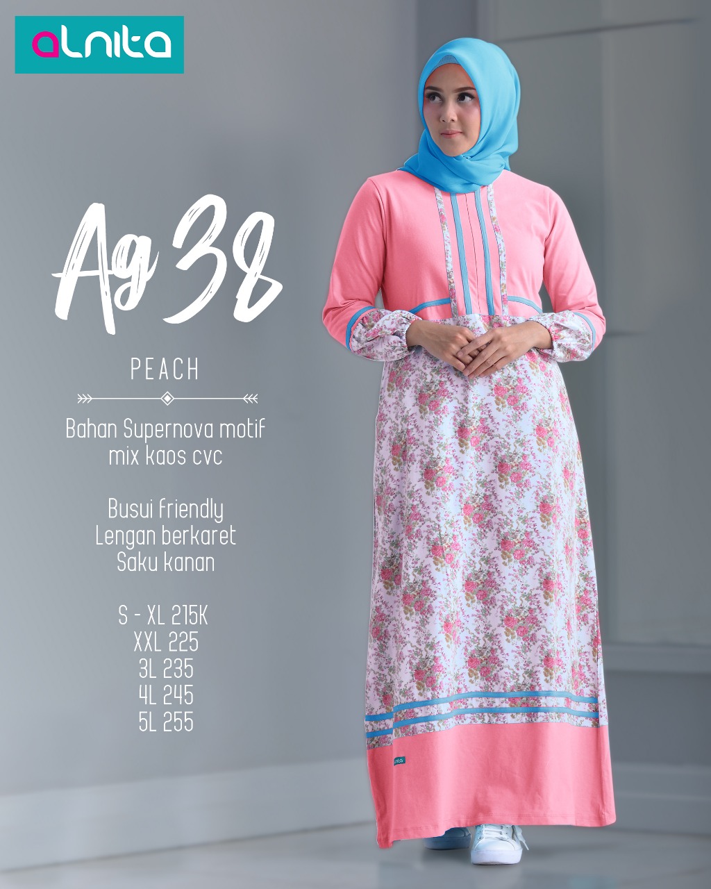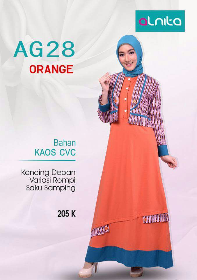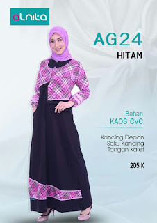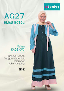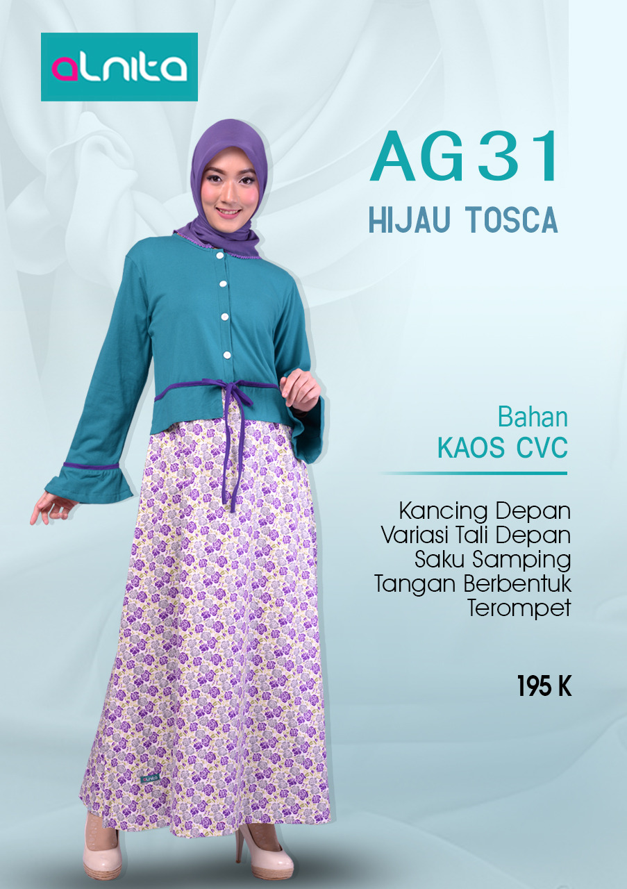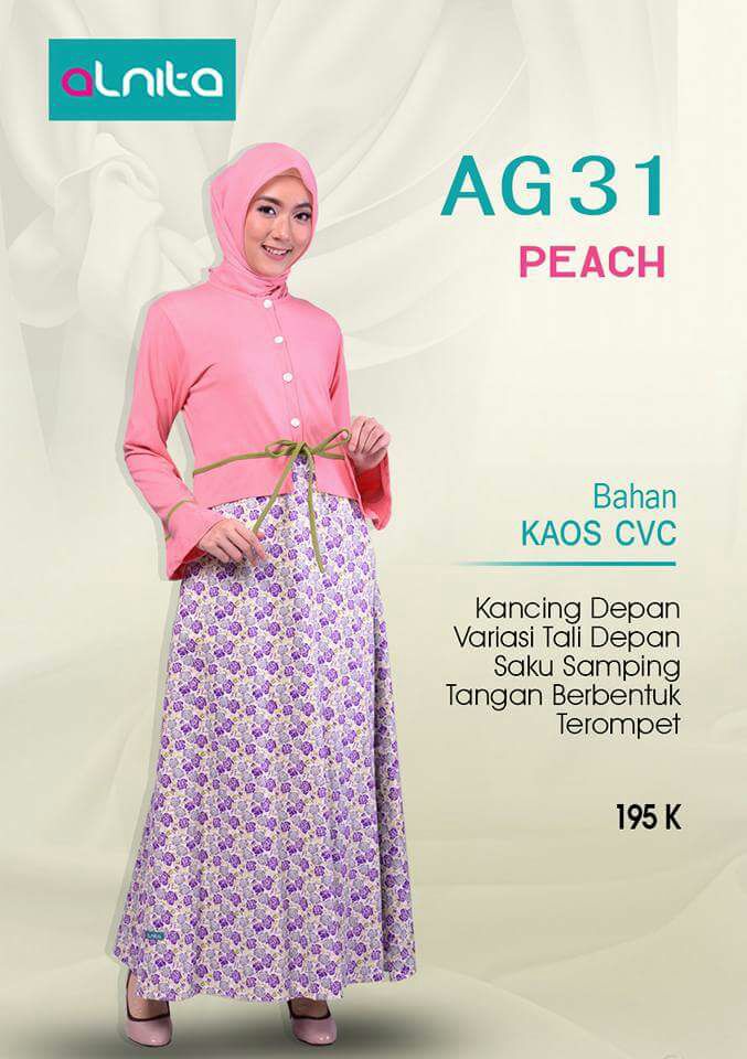 Koleksi gamis muslimah terbaru ALNITA AG 24-35 Untuk anda yg ingin tampil elegan namun tetap tampil cantik dan syari. Jargon Solusi Modis disaat Krisis, membuat gamis ini pas buat anda yg ingin lebih berhemat dalam berbusana muslim namun tetap menjaga kualitas. Dengan bahan kaos CVC yg dijamin kualitasnya.