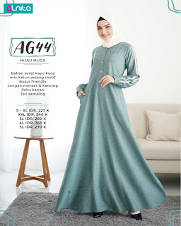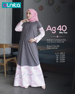 Koleksi Gamis Kaos Muslimah terbaru ALNITA AG 40,41,42,44 Untuk anda yg ingin tampil elegan namun tetap tampil cantik dan syari. Jargon Solusi Modis disaat Krisis, membuat gamis ini pas buat anda yg ingin lebih berhemat dalam berbusana muslim namun tetap menjaga kualitas.