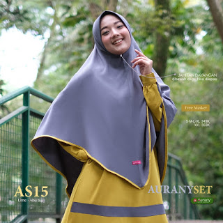 Koleksi Gamis Aurany Terbaru AS 15 melengkapi koleksi gamis syar'i anda. Dengan desain yang simple sangat cocok untuk kegiatan sehari-hari, selain itu gamis set model terbaru ini sangat nyaman untuk menemani aktifitas anda karena terbuat dari bahan yang terjamin kualitasnya.