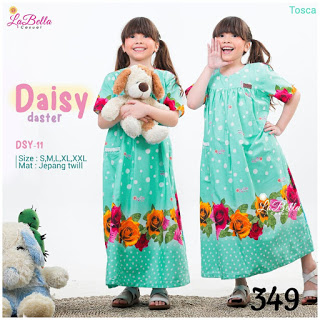 Koleksi Daster Anak Labella Terbaru Daisy Daster melengkapi koleksi busana daster buah hati anda. Dengan desain yang simple sangat cocok untuk buah hati yang sedang aktif, selain itu daster model terbaru ini sangat nyaman untuk menemani kegiatan buah hati anda karena terbuat dari bahan yang terjamin kualitasnya.