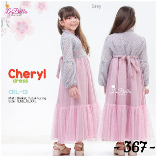 Koleksi Dress Anak Labella Terbaru Dress Cheryl melengkapi koleksi gamis buah hati anda. Dengan desain yang simple sangat cocok untuk buah hati yang sedang aktif, selain itu gamis model terbaru ini sangat nyaman untuk menemani kegiatan buah hati anda karena terbuat dari bahan yang terjamin kualitasnya.